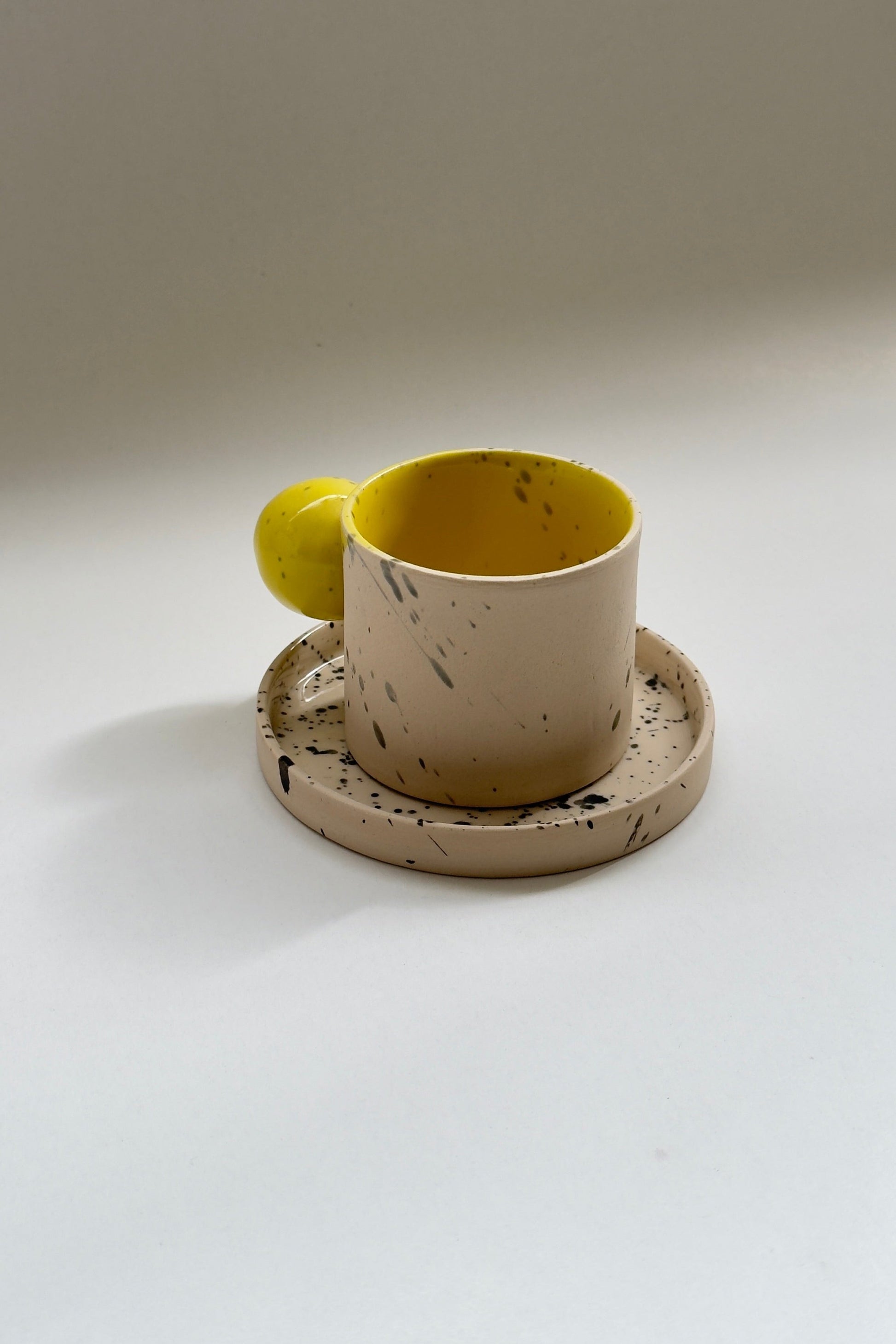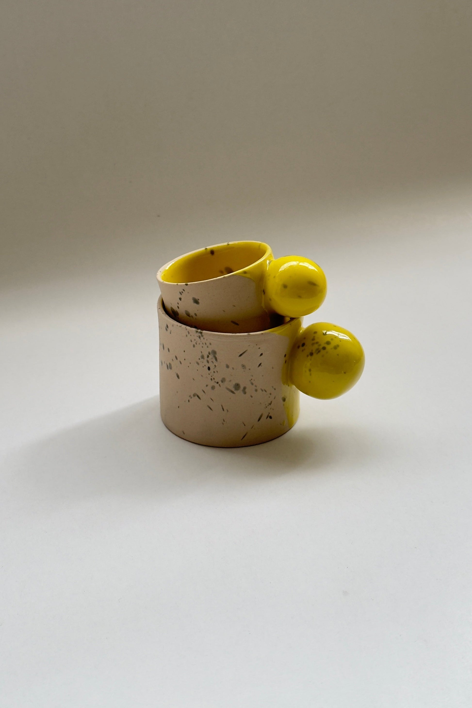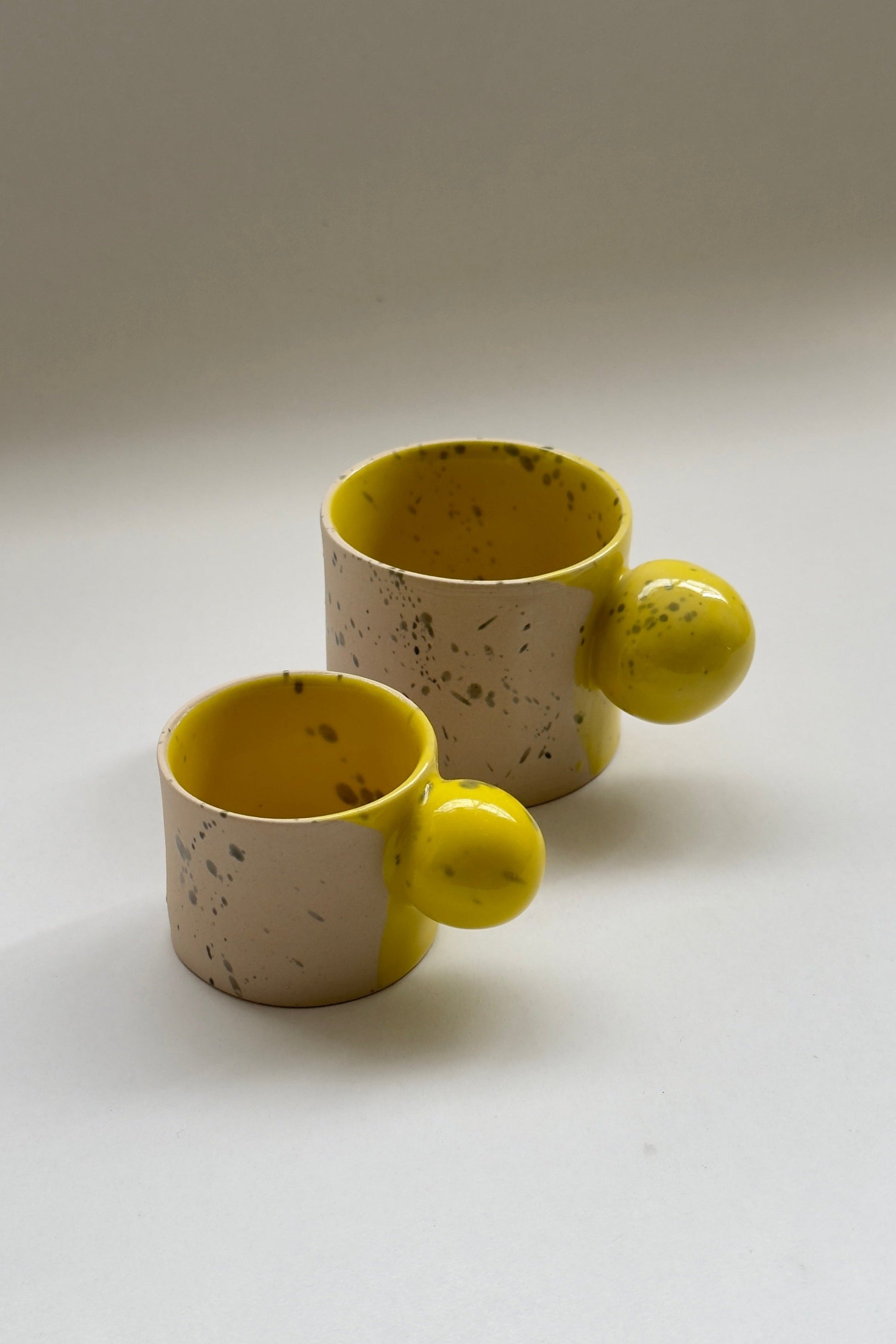 Mug en céramique beige et jaune fait main de 150 ml avec anse boule