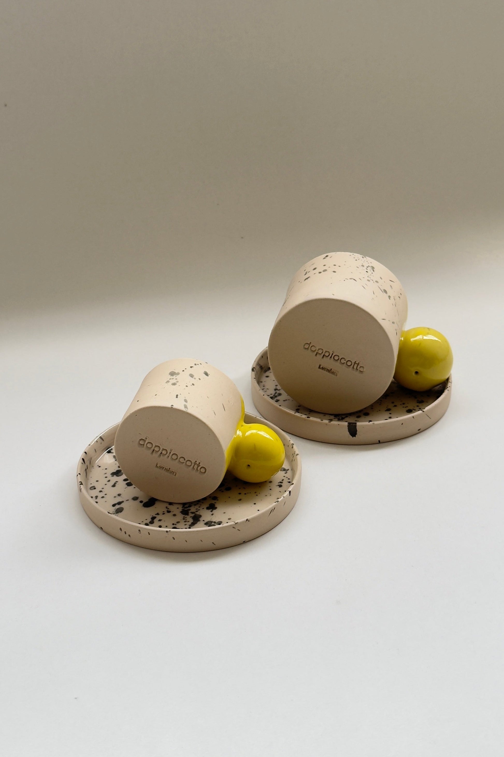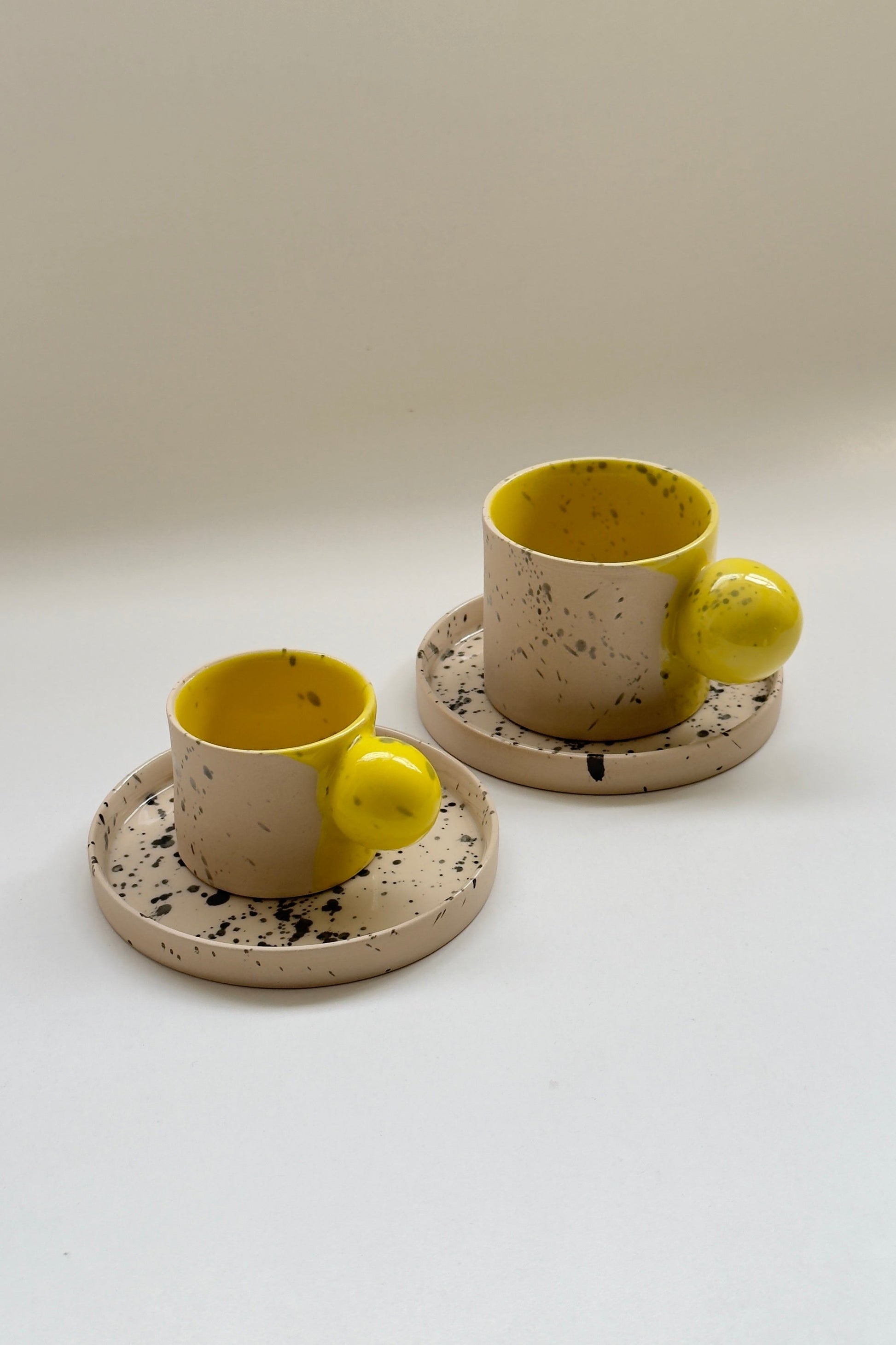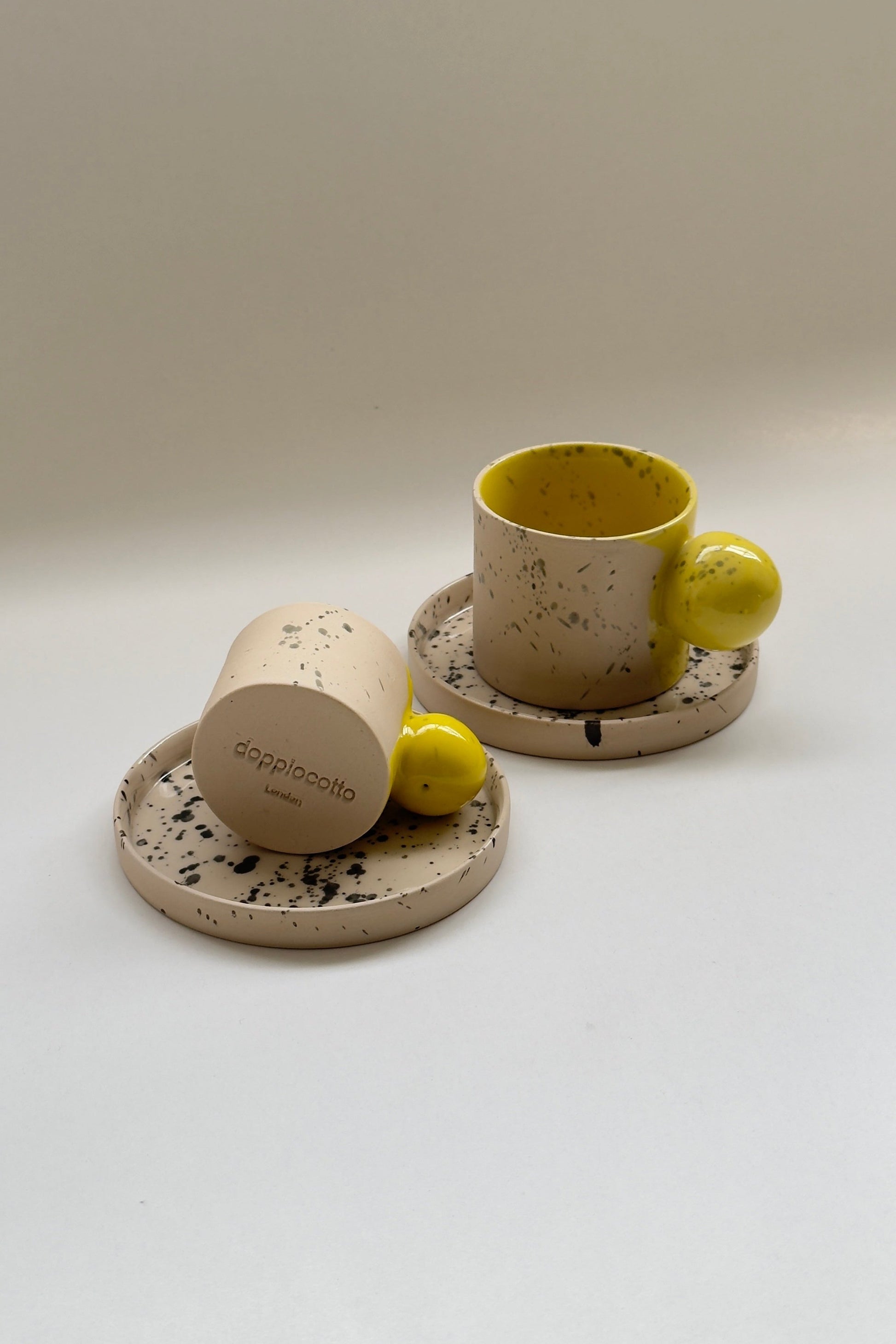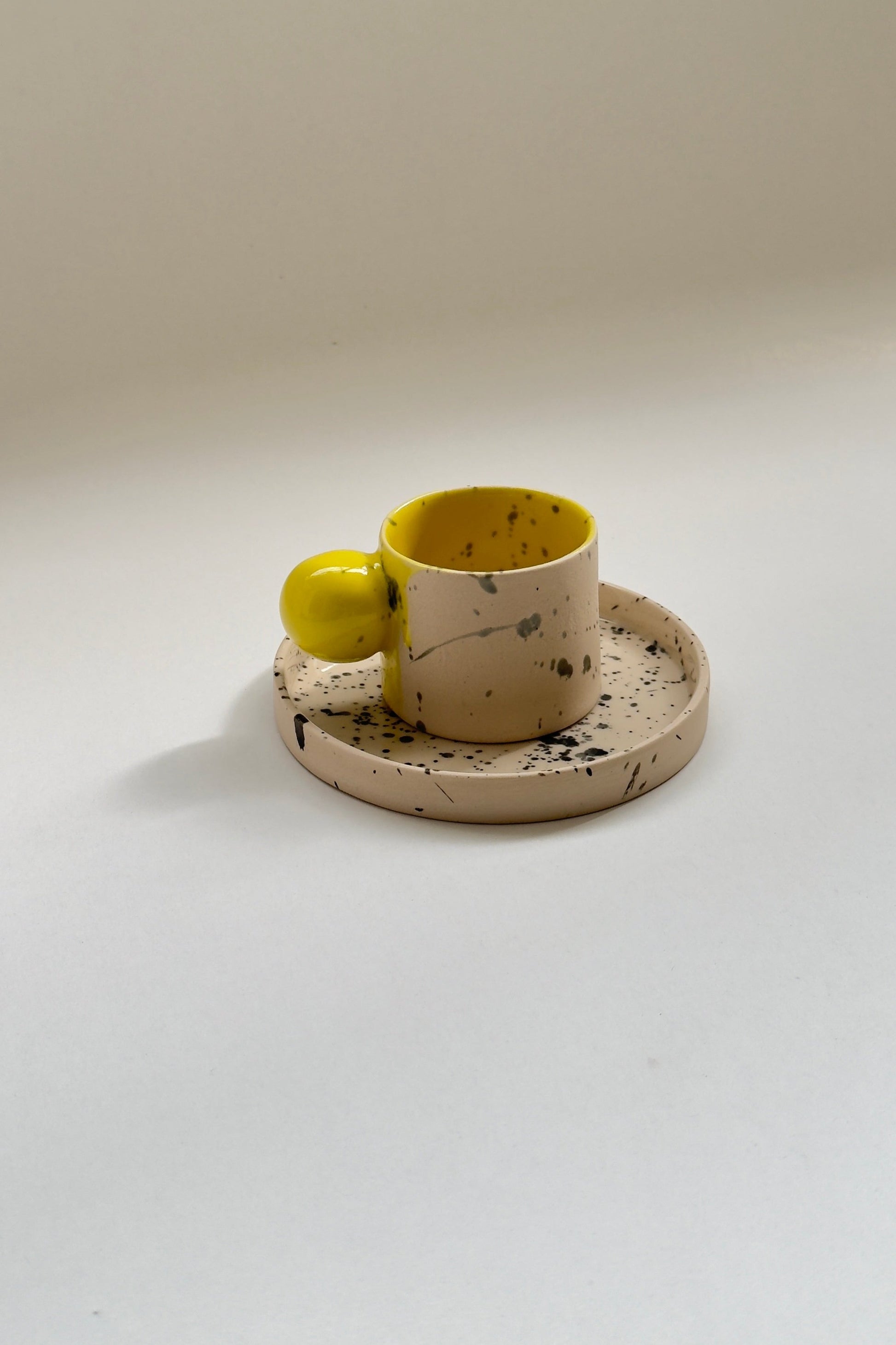 Mug en céramique beige et jaune fait main de 150 ml avec anse boule