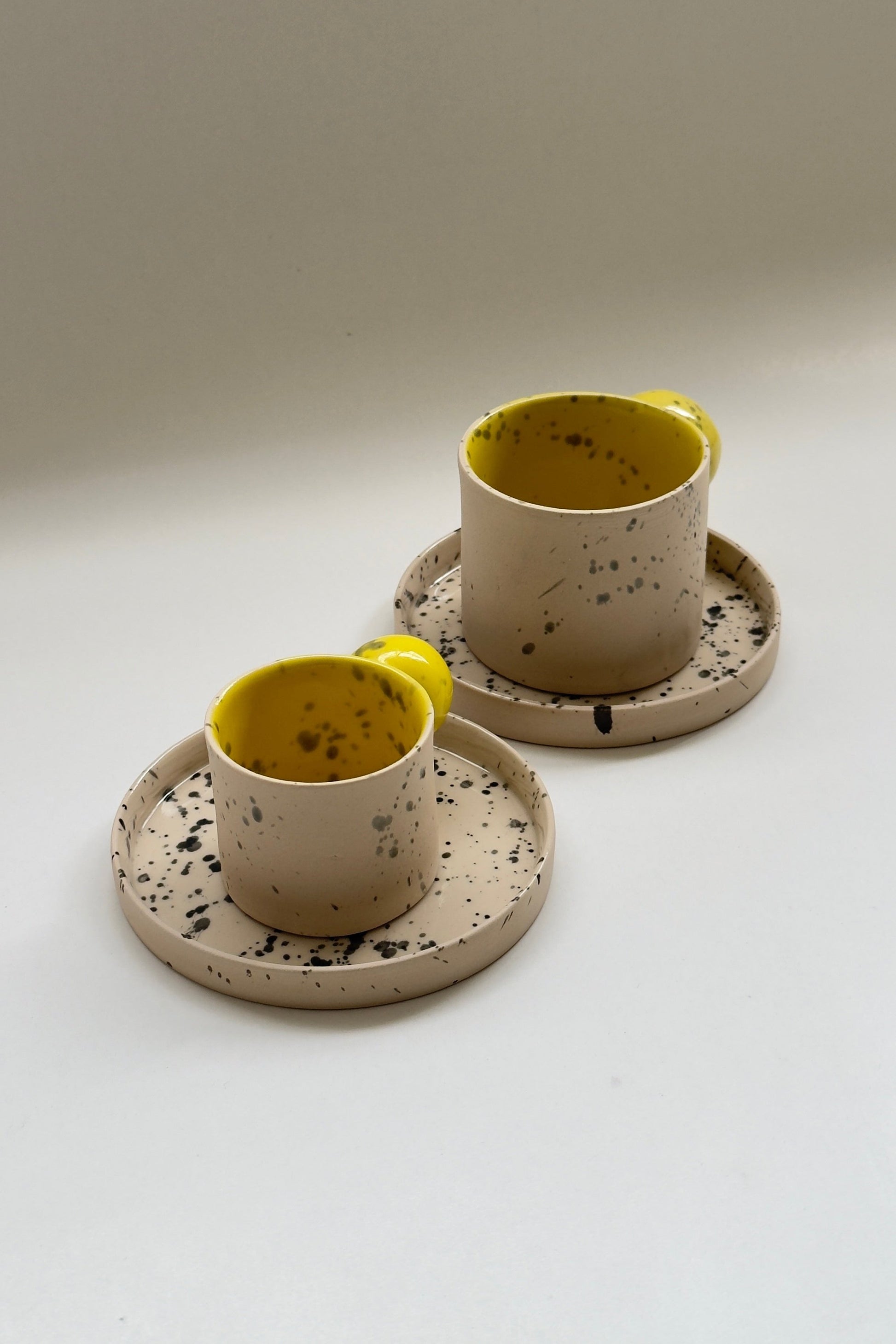 Tasse en céramique beige et jaune faite à la main de 150 ml